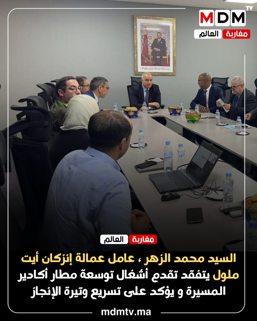في إطار تتبع الأوراش التنموية الكبرى، قام السيد محمد الزهر، عامل عمالة إنزكان أيت ملول، يوم الأربعاء 15 أبريل 2026، بزيارة ميدانية لورش توسعة مطار أكادير المسيرة.