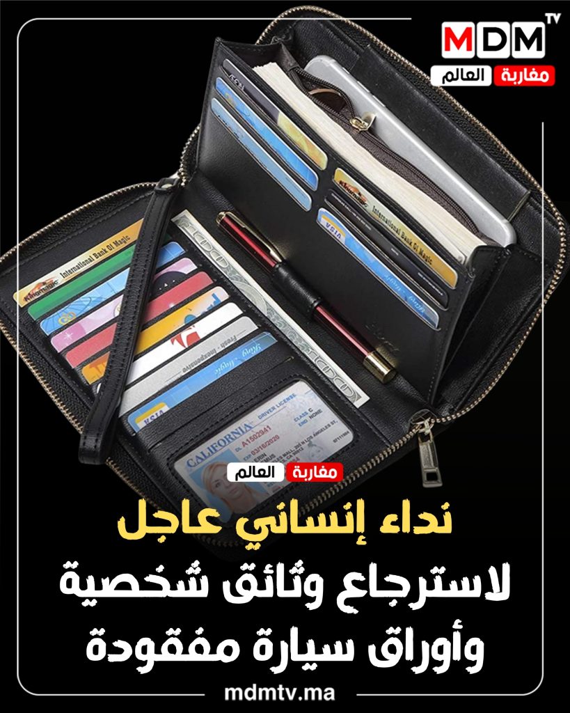 ووفق المعطيات المتوفرة، تضم الحقيبة المفقودة مجموعة من الوثائق الأساسية، من بينها البطاقة الوطنية للتعريف ورخصة السياقة باسم “يونس بل…”، إضافة إلى أوراق سيارة مسجلة باسم “محمد إكي…”. وتكتسي هذه الوثائق طابعاً ضرورياً في مختلف المعاملات الإدارية والحياتية اليومية، ما يجعل فقدانها مصدر قلق بالغ لصاحبها.